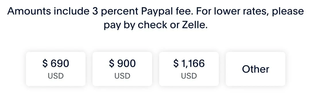 Investment level: $1,545/year - Supports above & families on scholarship. ($1591 with PayPal)